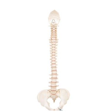 Model kręgosłupa. Posiada odwzorowane takie struktury jak płat potyliczny, miednica męska. Płat potyliczny oraz atlas mogą zostać zdemontowane. Wykonany z materiału, który pozwala na absolutnie naturalne odtworzenie nawet najdrobniejszych struktur anatomicznych ludzkiego kręgosłupa. Kości wykonane z 3B BONElike™ wyglądają jak prawdziwe, zapewniają naturalne odczucia z odwzorowaniem wagi kości.
