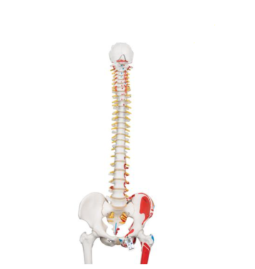 Dydaktyczny model kręgosłupa z głowami kości udowych i oznaczonymi mięśniami – elastyczny [A58/3]