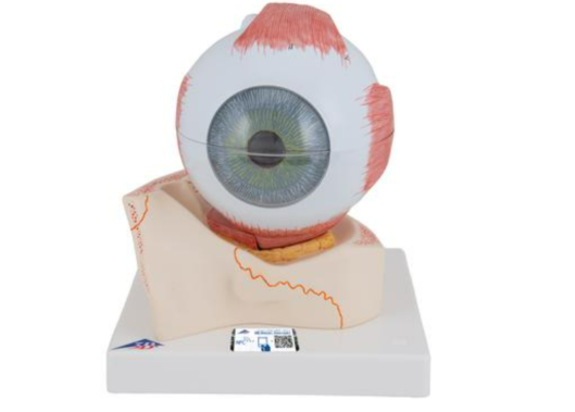 Model ludzkiego oka przedstawiony w 5-krotnym powiększeniu. Dedykowany do nauki anatomii. Model składa się z następujących elementów: