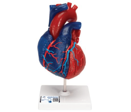 Odlew prawdziwego serca człowieka. Posiada szczegółowo odwzorowane struktury anatomiczne, w tym przedsionki i komory z mięśniami brodawkowatymi i zastawkami serca. Możliwość demontażu modelu na 5 części zapewnia wgląd wewnątrz serca i dokładne prześledzenie drogi krwi utlenowanej i odtlenowanej. Komory serca i naczynia (w tym naczynia wieńcowe), w których transportowana jest bogata w tlen krew, zostały oznaczone kolorem czerwonym. Komory serca i naczynia, w których znajduje się krew uboga w tlen, zostały oznaczone kolorem niebieskim.