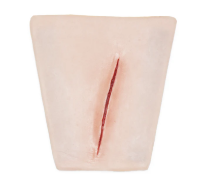Nakładana na pozoranta rana przedstawiająca podłużną ranę ciętą nadgarstka z możliwością zszycia rany. Model szczególnie przydatny do celów edukacyjnych, takich jak szkolenia z zakresu pierwszej pomocy, medycyny ratunkowej czy podstaw szycia chirurgicznego.