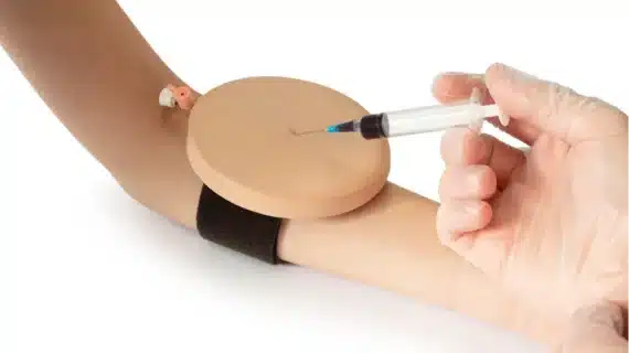 Nakładana podkładka do nauki iniekcji żył dołu łokciowego.