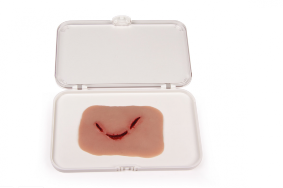 Dołączenie tej niezwykle dokładnie odwzorowanej rany, spowoduje, że symulacja wypadków stanie się bardziej zbliżona do rzeczywistości. Dzięki braku konieczności charakteryzacji czas przygotowania do zajęć jest coraz krótszy! Rana samoczynnie przylega do skóry pozoranta lub fantomu. Dostępny jest opcjonalny klej do dłuższego treningu lub lepszej przyczepności ran.