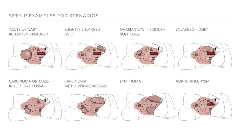 – Zestaw 6 patologii jamy brzusznej, w tym 4 gładkie masy i 2 twarde, nieregularne
