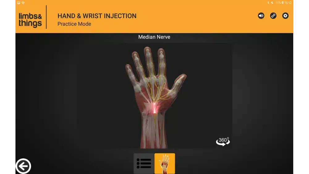 • Trenażer jest wyposażony w tablet z aplikacją. Aplikacja, w połączeniu z innowacyjną technologią sensoryczną, zapewnia ćwiczącym bezprzewodową informację zwrotną na temat procedury w czasie rzeczywistym. Interaktywny element anatomiczny pozwala użytkownikom obracać szczegółowy model anatomiczny o 360 stopni, dzięki czemu każde miejsce iniekcji można obejrzeć i przeanalizować pod różnymi kątami.