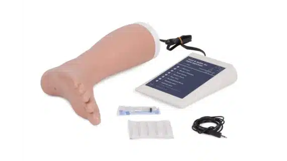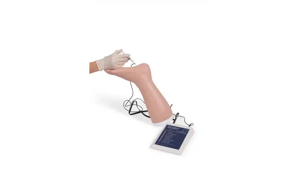 Trenażer do iniekcji dostawowych pozwala na naukę i doskonalenie technik iniekcji w ośmiu obszarach kostki i stopy.