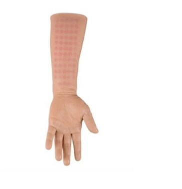 Trenażer do nauki wykonywania iniekcji śródskórnej w postaci przedramienia z dłonią.
