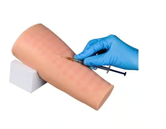 Trenażer do nauki wykonywania iniekcji śródskórnej w postaci przedramienia.