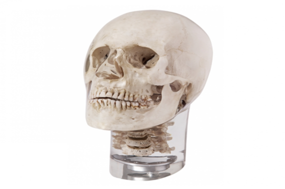 - trenażer w formie prawdziwej ludzkiej czaszki z częścią kręgów szyjnych