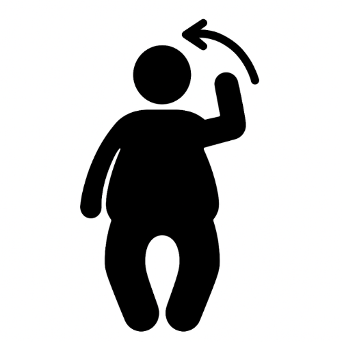 Reprezentacja osoby otyłej z ograniczoną ruchomością szyi.