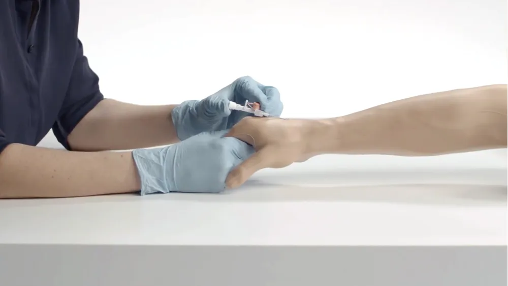 Zaawansowane ramię do treningu iniekcji dożylnej, wyposażone jest w opatentowany system mocowania skóry oraz modułowy system żył, co umożliwia wykonanie kaniulacji dożylnej (IV) oraz terapii infuzyjnej. Posiada ciśnieniowy system zasilania krwią.