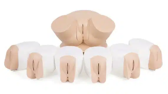 Anatomicznie poprawny model miednicy kobiecej z kostnymi punktami orientacyjnymi do nauki techniki badania ginekologicznego, rozpoznawania typowych schorzeń oraz drobnych patologii.