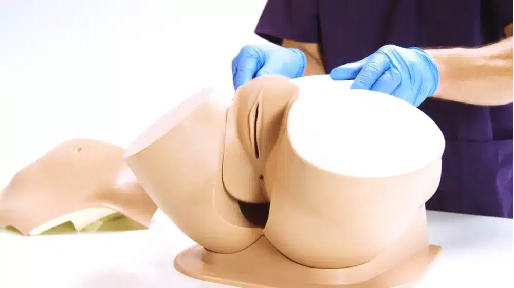 - Dolna część tułowia z fragmentami ud – ułatwia prawidłowe ułożenie modelu zgodnie z pozycją pacjentki